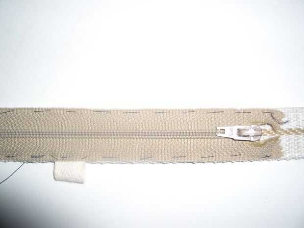 Pespuntear ambos bordes laterales de la banda entera (no sólo la parte de él Dónde está el zip) en el lado derecho. Necesitará utilizar el pie para cremalleras, o mover la aguja a la posición de la mano derecha o incluso coser con tela de grosor similar junto a la cinta, ya que se coser cerca del borde de la cinta para coger el borde de la cinta de la cremallera por debajo. Arranque con la cremallera abierta y punto del final de anillas hasta llegar a mitad de camino por la cremallera. Parada con la aguja en el tejido, levante el pie de presión y cuidadosamente cerca el zip antes de ejecutar en la costura, de lo contrario el tirón de la cremallera en el camino. En el extremo libre del cinturón de la puntada a través y luego por el otro lado. Coser la mitad de camino el zip, abrirlo y luego continuar hasta el final de anillas. Rematar los extremos del hilo y quitar las tachuelas.