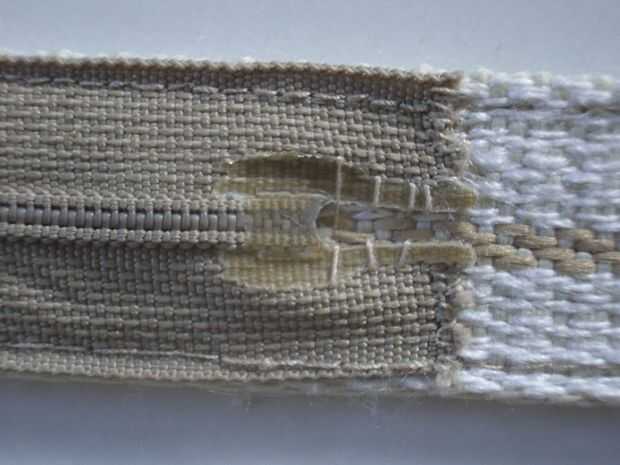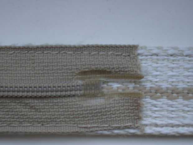 Con algunos tipos de correas, simplemente trabaja a máquina la costura de gama más baja en un hilo que puede ser fino - ver los comentarios en la introducción. De lo contrario, apriete un poco pegamento para tela en el extremo inferior de la cremallera y presione bajo un libro pesado hasta que se seque, o bien slipstitch el extremo libre en el lugar en el lado equivocado de la banda, teniendo cuidado de que las puntadas no se muestran en el lado derecho. Ni método será tan fuerte como las dos filas de máquina de costura fije el extremo superior de la cremallera, que no importa, el extremo superior debe resistir la tracción de la ficha de zip, pero todo lo necesario en el fondo es que nada en el bolsillo cae hacia fuera.