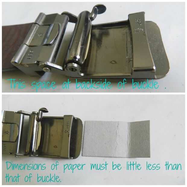 Cortar el papel según dimensión de hebilla. Compruebe si cabe dentro correctamente o no.