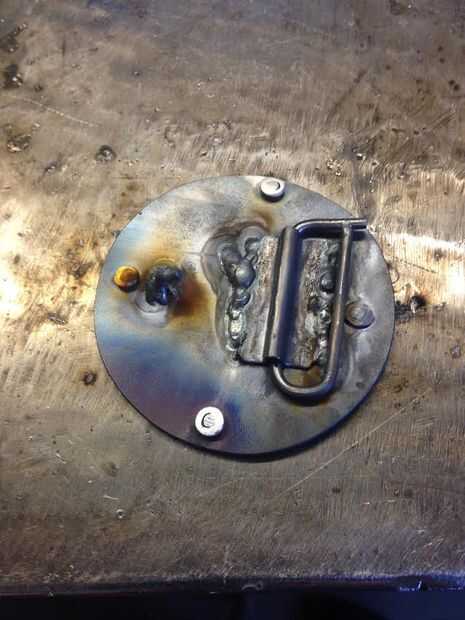 1) un anillo que Deslice la correa a través de (acero redondo hecho de 1/8 de pulgada)