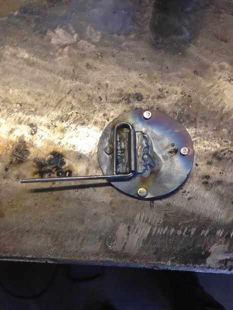 3) un pedazo para sostener la correa a través de los agujeros (también hechos de acero de 1/8 de pulgada redondo