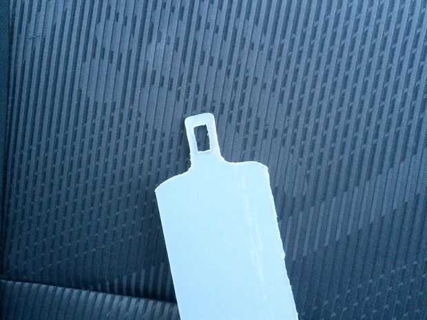 Utilizando un marcador, trace la forma de su cinturón de seguridad sobre el plástico y recórtalo usando una Dremel u otra herramienta rotativa. Probé una sierra, un cuchillo y un cuchillo caliente. La sierra apenas funcionaba y tampoco el cuchillo. El cuchillo caliente trabajado pero era lento y olía terrible. Me imagino que los gases son bastante malos para usted también. No olvide para marcar y cortar que el agujero en el interior o no abrochar correctamente.
