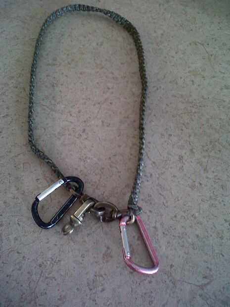 publicando mi Instructable último, pensé en una versión alternativa. Utiliza menos cable y en cierta forma es más fácil de construir.Para empezar con necesita:Paracord - yo 2 metros, pero fácilmente podría ser enangostado abajo al menos.Mosquetón - u