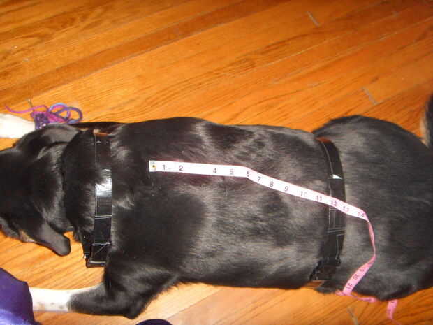 Cuándo colocar las correas tenga en cuenta la colocación de los clips de plástico. Seguí minas en línea con el hombro izquierdo de Robyn. Su perro tendrá que levantar una de sus delanteras izquierdas para entrar en el cinturón de seguridad cada vez que no importa donde se colocan los clips, pero si la delantera y trasera son en línea usted sabrá dónde buscar para ellos.
