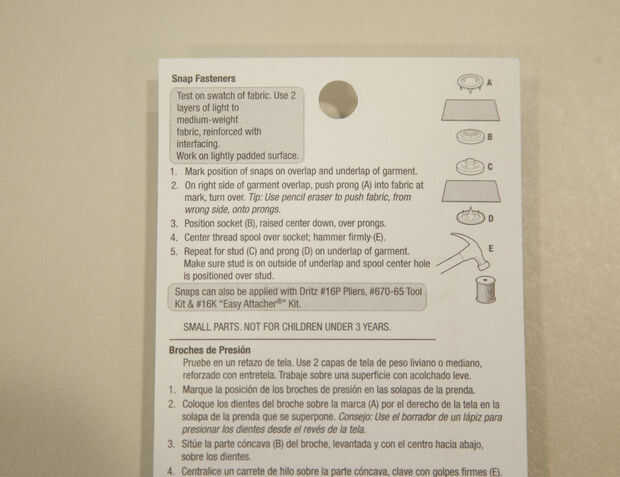 Siga las instrucciones en el paquete. Algunas instantáneas de convocatoria en un yunque especial, pero para algunas clases (por ejemplo, la clase utilicé) se puede utilizar un carrete de hilo como un yunque.