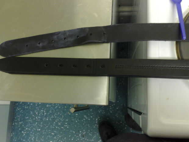 Ahora es el momento para tamaño y colocar los imanes, lo primero que quiero hacer es poner en una de las bandas o incluso mayores y cuando está en uso un lápiz para marcar hacia fuera allí desea los imanes para empezar y terminar, (he usado y viejo cinturón de Halloween para las medidas).