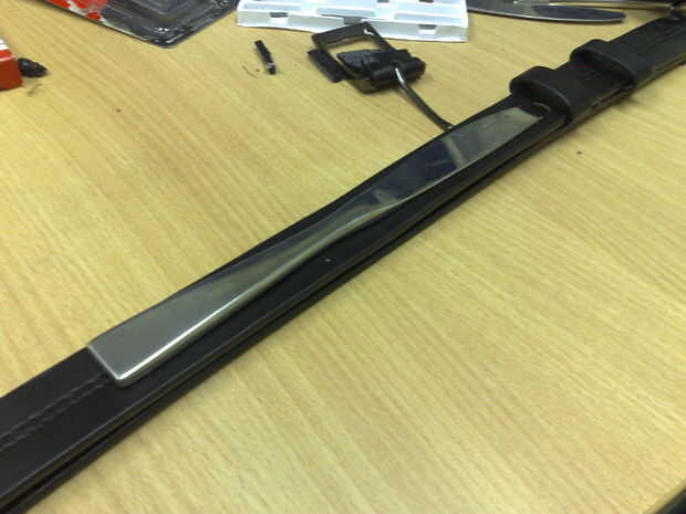 Una vez que ha terminado pegado hasta el final de lo imanes hacen que se ajuste el resto de la banda de (el golpe con los agujeros) como 2 juegos de los agujeros son más difíciles de poner lanzó la hebilla y no olvides sellarla con algun pegamento más.