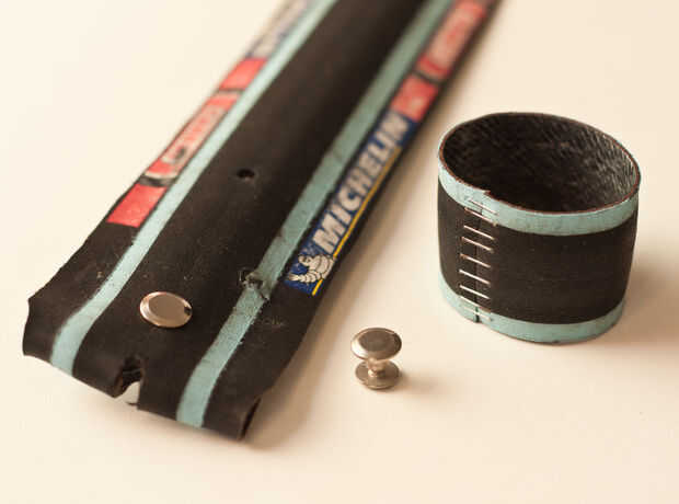 A continuación, inserte la hebilla, cierre el primer remache, inserte el lazo y añadir el último remache.