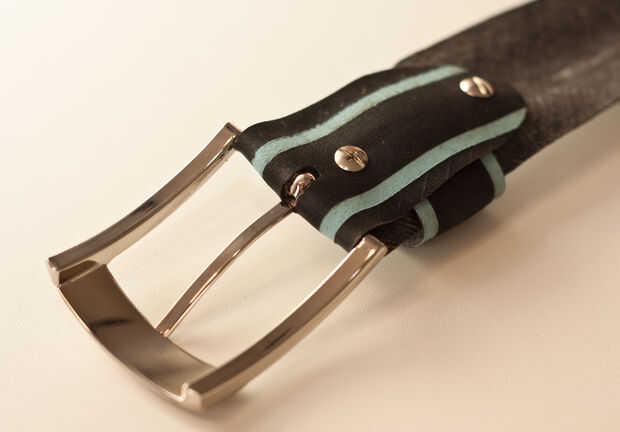 Conectar los bordes de la banda con la grapadora para hacer el lazo. Como se verá para las correas de la siguiente, puede dar al lazo de la forma plana con una solución simple, sólo hierro o lugar en el tostador guardó en forma con una clavija de metal. No hacerlo para este mi primer cinturón.