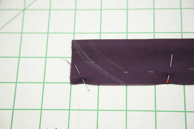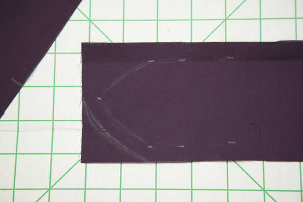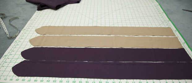 Corte una segunda tira de la tela de la cáscara y dos tiras de la interlinear (si está usando). Si has afilado un extremo, es útil rastrear su franja original para garantizar a una coincidencia exacta. También como trazar una marca en cada extremo de los lados largo y rectos y luego utilizar un criterio para obtener una línea perfectamente recta.