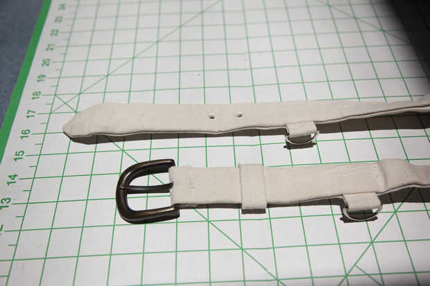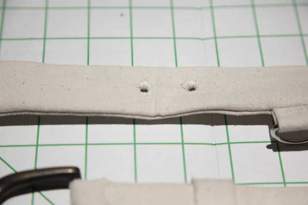 Una vez que has hecho tu ojete, vestíos de la hebilla con la púa a través del orificio (Asegúrese de que va la forma correcta) y coser el extremo de la correa en su lugar.