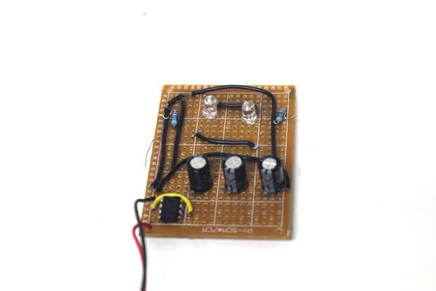 A continuación, agregue dos LEDs para hacer los ojos del robot y una resistencia más a hacer otro "oreja". Utilizando la misma técnica descrita anteriormente, la soldadura en la resistencia de 200 ohm. Luego conecte el positivo del LED (cable largo) a la resistencia. Conecte el otro cable el siguiente LED positivo (cable largo). Finalmente Conecte el último disponible a la tierra. Trate de usar cejas del robot para conectar el LED junto.