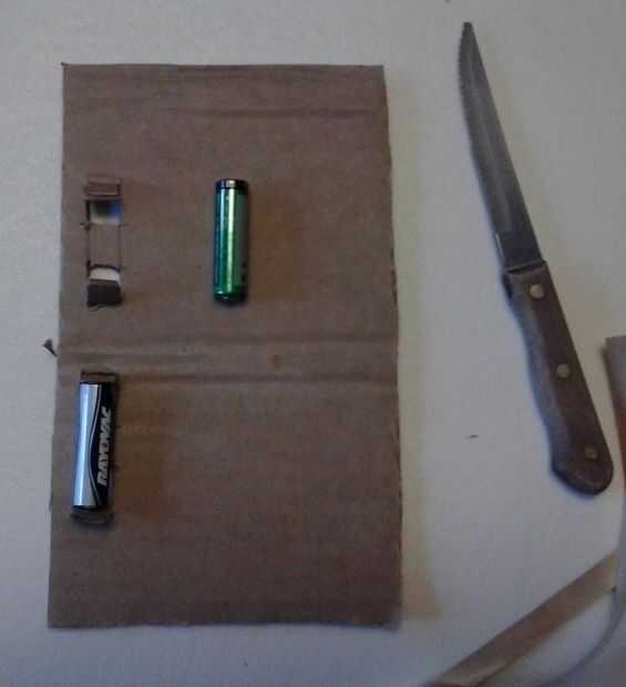 Adultos: Con el cuchillo, corte 2 aletas para cada AA. Estas aletas se utilizará para conectar a la batería.