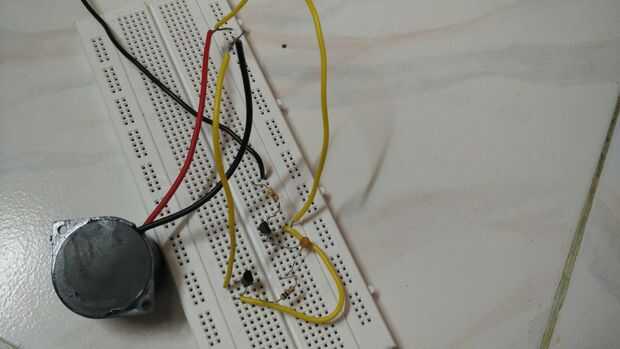 Ahora, para indicar la lluvia, nos estamos conectando un zumbador piezoeléctrico. El lado positivo está conectado al colector del pnp y el extremo negativo está conectado al emisor del npn. Aquí el colector del transistor BC548 NPN es cojnected a la base del transistor PNP BC558