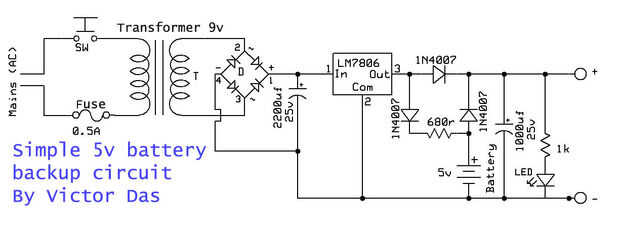 Circuito de backup de batería 5v simple