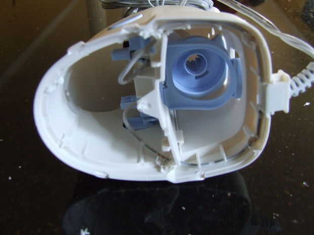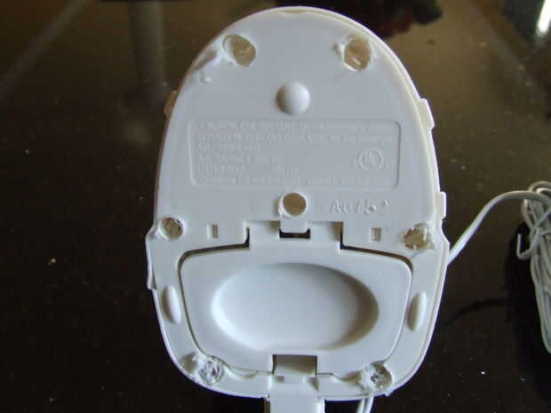 Iniciado por perforación de los remaches de plástico en la parte inferior del ambientador. Esto no es nesscesary, pero hace más fácil de abrir. Si no tienes un taladro, solo rip lo maldito abrir con un destornillador.