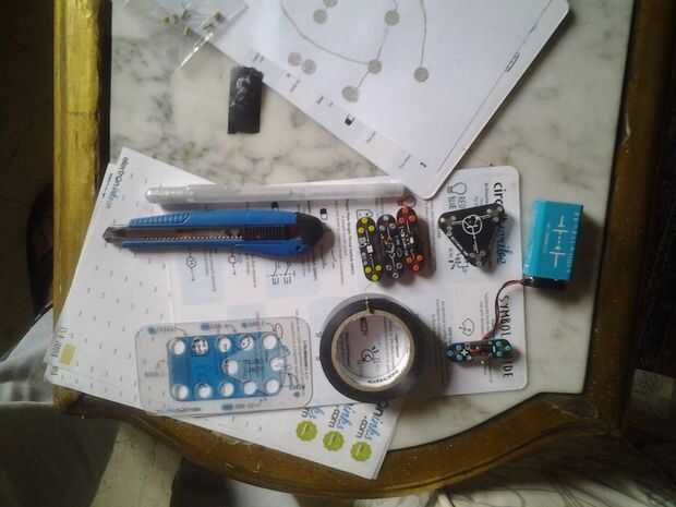 Para piezas no magnéticas circuitscribe kit usamos componentes electrónicos regulares y cinta adhesiva en papel