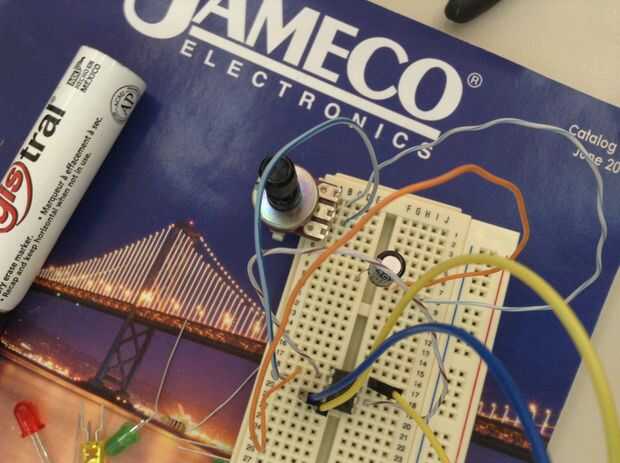 hice esto como un proyecto rápido usar mucho los LEDs tengo recientemente. Básicamente se conecta vía un 555 8 pin IC y permite ajustar el tiempo entre el tapajuntas cambiando los valores de resistencia o condensador. Proporciona un fresco buscando e
