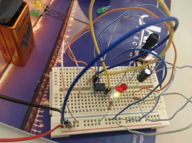 hice esto como un proyecto rápido usar mucho los LEDs tengo recientemente. Básicamente se conecta vía un 555 8 pin IC y permite ajustar el tiempo entre el tapajuntas cambiando los valores de resistencia o condensador. Proporciona un fresco buscando e