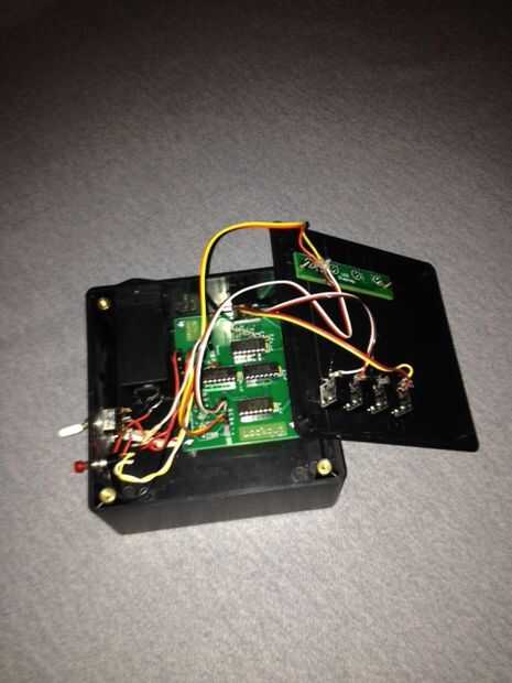 Hay dos interruptores en el lado además de cuatro pulsadores en amarres de alambre. Uno es un interruptor de encendido/apagado. El otro es un pulsador de reset el circuito para la siguiente pregunta. También en el lado es un LED utilizado para indicar que el cuadro se enciende.