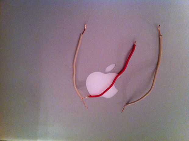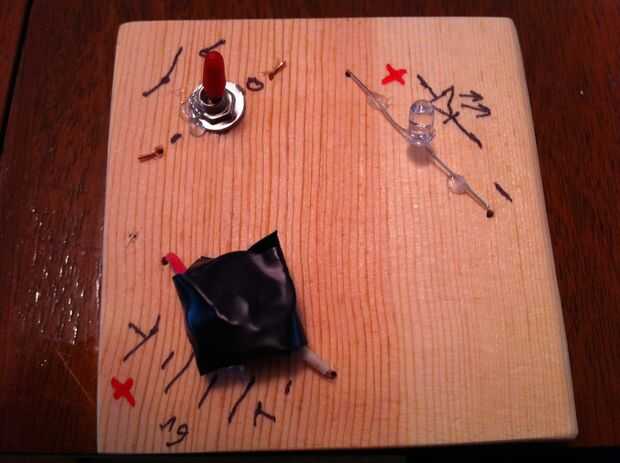 Cada circuito tiene 3 trozos de cable con ambos extremos despojados: dos largos y uno corto. La longitud exacta depende de los tamaños de las tablas y la colocación de los componentes. Hice mía lo suficiente como para permitir conectar los circuitos sin el interruptor, y al revés así que pueden ver lo que sucede entonces (nada).