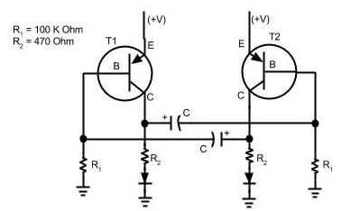 Un circuito muy simple que se puede construir a blink o flash LED. El circuito está construido con transistores, resistencias, capacitores y LEDs. Por supuesto se necesita un protoboard, puentes de alambre y una fuente de energía. La lista de piezas incluye: