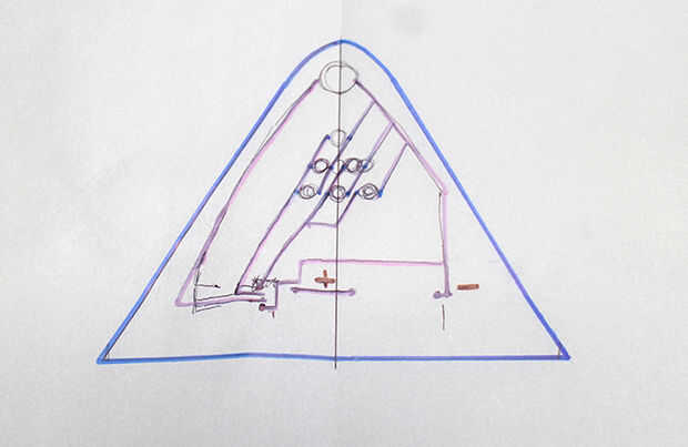 Tu circuito en papel, esto es antes del paso de illustrator y captura la disposición general y la geometría, dejando el refinamiento para más adelante.