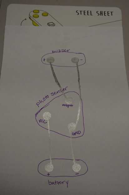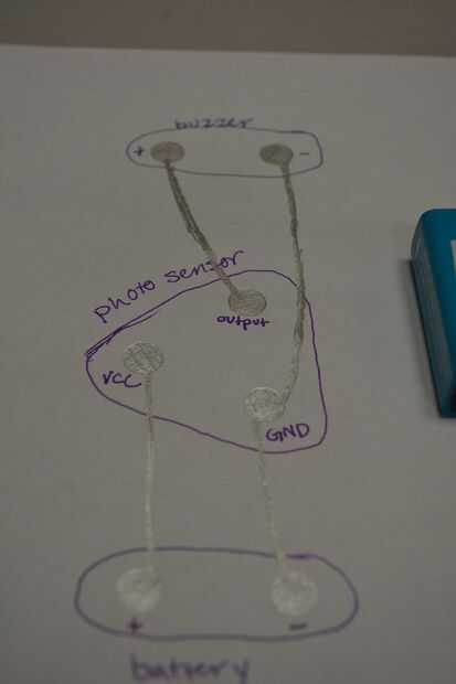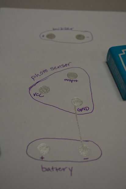 Conectar los componentes entre sí. Me pareció útil para huellas de la etiqueta para asegurarse de que estaba conectando las piezas adecuadas. Aquí, nos Conecte el lado positivo del módulo de energía a "VCC" en el sensor de la foto, entonces 'salida' en el sensor de foto para el lado positivo de la alarma. El lado negativo del zumbador se conecta a la 'Tierra' en el sensor de foto y en última instancia al lado negativo del módulo de energía, completando el circuito.