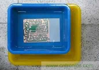 En de cada uno los métodos no son lo mismo, porque no puedo pagar un buen estudiante etch kit es pensar en maneras de comprar equipos similares, pero los resultados definitivamente se perdieron no kit de grabado profesional Oh! A continuación, plug-in que historia! Dos macetas de plástico, macetas de plástico grandes y pequeñas. Está lleno de agua caliente grande después de grabado haría con calentamiento de agua, y se instala una pequeña aguafuerte solución. En términos de la aguafuerte solución tenga en cuenta que el ejemplo utilizado en la solución de la aguafuerte es respetuoso del medio ambiente, que está previsto antes del cloruro férrico que contiene altamente tóxico y la recuperación no es fácil, así que ahora tiene que cambiar a solución ambientalmente amigable de la aguafuerte. Preste especial atención a la protección del medio ambiente en el uso de la solución de la aguafuerte en el mercado para comprar una bolsa de polvo blanco, añadir agua 650c.c. se debe disolver, hay mucha gente mal grabado, sobre todo la proporción de errores de implementación. Aguafuerte con agua se puede disolver completamente después de su uso. Pistola con un cepillo suave: la pistola dentro del líquido de desarrollo, cepillo suave se utiliza para ayudar con la proyección de imagen de tiempo de reacción, desarrollo de solución también la necesidad de implementar y usar mi propio método es primera en desarrollo implementación de solución buena (proporciones ※ 1:20) y luego tomar un gran paute embotellado para arriba, porque desarrollar solución reacciona con el aire y el fracaso, después de desarrollar la solución líquida y luego vierte en una parte de la pistola , y el resto se almacena en un lugar oscuro (necesidad de cubrir bien). El objetivo es salvar el uso de la solución en desarrollo. Instrucciones será mejores después de la implementación de la solución puede colocarse en macetas de plástico de imagen, pero ésta se utiliza para grabar la superficie de contacto aire líquido y al día siguiente aquellos que desarrollan la solución no pueden ser la reacción, el otro con un spray también puede ser una parte más pequeña de la escintigrafía de circuito hacia fuera, esta es mi experiencia proporciona una referencia. Por último, el original y una tarjeta transparente: librerías Original pueden irles pedimos que le ayude con un toner de fotocopiadora impresión, no importa lo poco compra transparencias de inyección de tinta especial, pero el precio es muy caro, pero la calidad es muy buena Oh. Cristal transparente puede usarse para reemplazar la Junta, y yo soy la opción de 5mm de espesor de la hoja de acrílico, utilice esta tabla, al original con el sello de placa, de lo contrario después de proyección de imagen de la exposición será muy pobre condición tuvo la suerte un poco oscurecido, no suerte, es un cortocircuito directo, se adhiere para limpiar la Junta, esperaría a ver los fuegos artificiales en el laboratorio. Así que la mejor tabla de selección tiene un poco peso al nivel original en placa fija. No utilice otro color Tablero prensado Oh! Como esto haría que la luz ultravioleta penetre fácilmente. La exposición Ultravioleta, entonces como la fuente de luz puede estar expuesta, pero el tiempo me voy a medir según experiencia personal, y generalmente utilizo la exposición Ultravioleta especial si la máquina de la exposición, tendrá unos 90-120 segundos, pero eso es todo, no todas veces la escuela puede pedir prestado, así que usar sobre todo el tiempo de exposición de la lámpara es agarrando a los 9-12 minutos , y luego de la placa de la lámpara no puede ser demasiado cerca ni demasiado lejos, unos 5-10 cm de arriba a abajo. Recordó que sólo había aprendido medianoche lavadora, cómo son expuestos a fallar y finalmente descubrió que la luz del tablero demasiado cerca. Pero si demasiado, falta de luz ultravioleta, por lo que puede tirar mucho tiempo, que yo no puedo detallar calculado para aumentar el largo, todavía se establecerá en el rango de 5 a 10 cm es como. Cuando la proyección de imagen, sugiero llevar siempre guantes, porque se siente cosas resbaladizas como álcali, a mano de todo el mundo, se recomienda usar guantes. Después de desarrollar líquido rocía sobre el tablero, por favor no se apresure a él, porque le dará tiempo de respuesta, me he alojado unos 30 segundos o así pintar, Junta de cepillo se debe tener cuidado de cuando y si la línea es demasiado fuerte en el tablero pero será cero, cuando las palabras grabadas en la rotura, y el circuito no se mueve también se convierte en una obviedad. Proyección de imagen para permitir que todas las líneas son claras, aunque terminó, pero cabe señalar, no creo que la línea desarrollo de aerosol líquido será más clara, si lo hace, va a lavarse de la línea, usted puede sólo exposición. Si en el momento de hacerlo perfectamente la proyección de imagen, va a ser muy bonito grabado, ligaduras son claramente visible desenfoque Oh no! En principio ha dicho grabador quiere agua de calefacción, ya que se calienta la solución de la aguafuerte reacción llega a ser más rápida, lavado se acortará el tiempo de espera de la Junta, y por lo tanto una gran tina de plástico llena de agua caliente dentro. Antes de que pidiera a decir si la temperatura de control? Grabador de calefacción puede ir a 65 grados, por lo que simplemente no tiene problemas en 65 grados, por lo que vierte directamente en 100 grados de ebullición agua en grandes macetas de plástico, porque el agua es de enfriamiento rápido y gran área y otra vez después de otro calor de macetas de plástico, como realmente se trata de no muy alta temperatura, así que no piensas como la mano no puede soportar las temperaturas son menos de 65 grados. Si al hacerlo durante la agitación de la aguafuerte, así que mucho de la velocidad se acelerará. Este es el final de todos los proceso