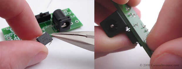 -Una de las mejores maneras de mantener un componente en su lugar debe insertarlo y luego poner el tablero boca abajo por lo que la superficie de la mesa guarda el componente en el lugar. Si instala más corto al más alto, el componente más alto siempre será el que está trabajando actualmente.