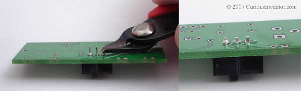 Cortadores de descarga son útiles para recortar puntas cerca de la superficie. Cortador diagonal regular también puede funcionar. Gafas de seguridad son realmente una buena idea para este paso, los conductores pueden volar rápidamente. Generalmente nos gusta mantener el plomo mientras que recorte.