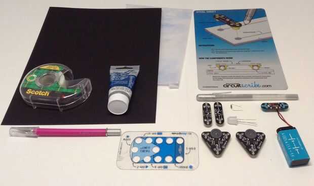 Circuito Scribe es un kit realmente que utiliza tinta conductiva en la elaboración de tus propios circuitos. Esto es genial porque permite garabatear su propio circuito! En los siguientes pasos, estamos utilizando el conjunto de 48 piezas de "Desarro