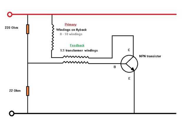 Después probé el flyback driver con los devanados primario y retroalimentación sobre núcleo de ferrita de flyback, pensé: * por qué no probar t o usar un pequeño transformador con bobinados a oscilar el proceso mismo y así descubrí que me gustaría probar, y tengo 10 - 15 kV más del transformador flyback haciendo esto, así que pensé que haría un instructable.