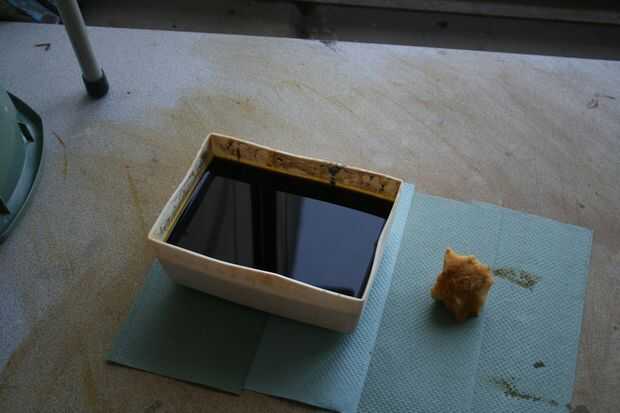 Coloque la placa en un baño de cloruro férrico. Utilice una bañera de plástico para esto y guantes etc., rhis es bastante horrible. Ayuda a calentar el cloruro férrico un poco, lo hago poniendo en el sol. Dejar las placas durante aproximadamente media hora, ayuda a fregar con una esponja. Esponja y bañarse hasta que se elimina todo el cobre.