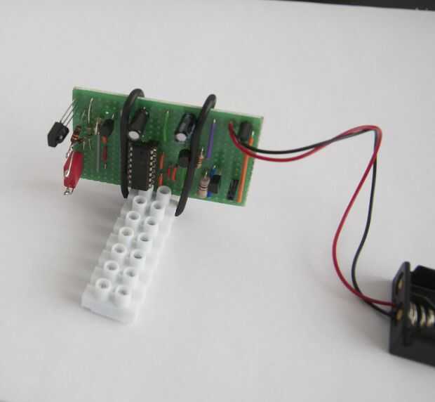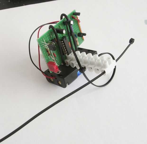 Para montar el circuito en "columna vertebral" de un bibberbeest (una tira de conectores), hice un par de correas con cable de núcleo sólido de 16 Amp (ver foto 1).