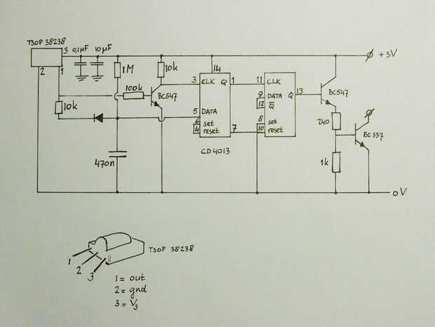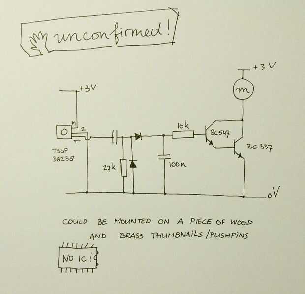 - Quiero probar el circuito en cuadro 1. No contiene un IC y usa un filtro analógico para recoger la señal de 38kHz de la RC, ignorando cualquier perdida / ambiente de la radiación IR.