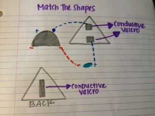 Esta fue una de las primeras páginas decidí probar porque es la más sencilla. Decidí que quería el soporte para las formas para iluminar cuando el triángulo se pone en el otro triángulo. Así muestra un diagrama el LED en el bolsillo y el soporte de la batería junto a ayudante en la simplicidad. Una vez que el triángulo se inserta en el triángulo - Voila! El LED se enciende.