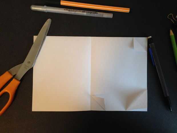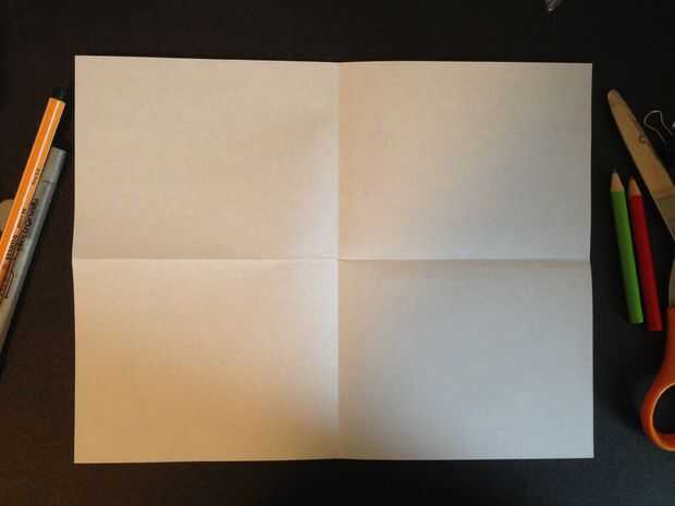Empiece por arrugar el papel en cuatro secciones y doblar en dos veces. Cuando coloque la tarjeta sobre la mesa y lo abre, el pliegue largo debe estar en el borde superior de la tarjeta.
