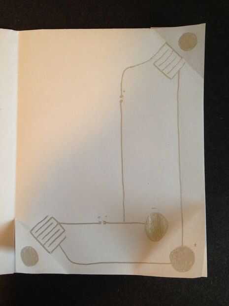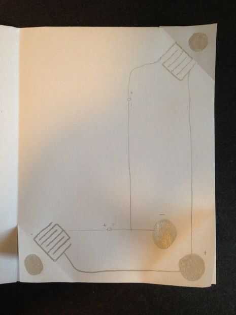 3) ahora Repita el proceso para el otro LED. Trazar una línea desde la solapa exterior del soporte de la batería a un lado del interruptor. Continuar dibujando desde el otro lado del interruptor de patrón. Deje una separación de 2 mm para el LED. Seguir el dibujo para conectar al otro lado del LED en el plato de la batería interna. En lugar de dibujar a esta tecla, podría tener sentido para conectar hasta la misma línea que dibujó el otro LED. Usted puede decidir en base en donde colocar tu propio LED!