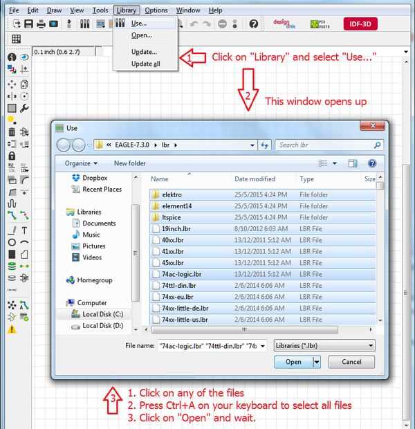 Lo primero que tenemos que hacer antes de hacer el diseño real es colocar todos los componentes necesarios en el tablero de diseño. Todo lo que necesitamos es almacenado en las bibliotecas.