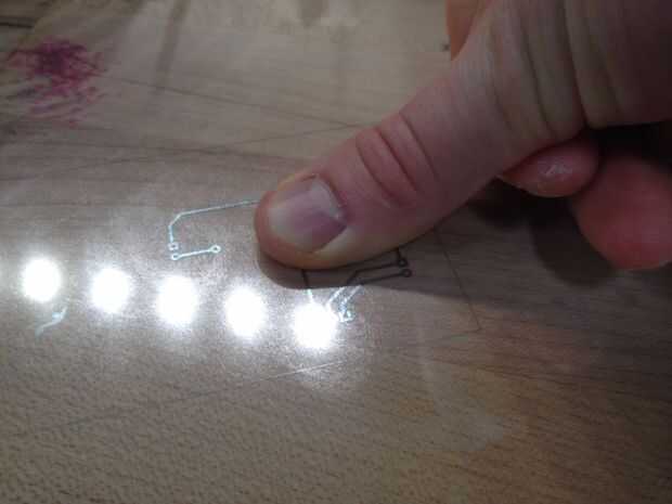 Consejo: Si el método "huellas dactilares", imprimir una prueba del circuito y ponerlo debajo de su transparencia. Esto le ayudará a averiguar donde debe manchar tu impresión.