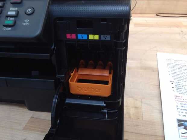 Los cartuchos de tinta recargables vinieron con una pequeña palanca/rótula plástica. Hay una función de "seguridad" en la impresora que no permite la impresora operar cuando la puerta de impresión está abierta. La impresora puede ser engañada en el pensamiento de que la puerta esté cerrada sin embargo usando la palanca para pulsar. Simplemente deslice dentro de la grieta y agitan alrededor hasta que desaparece el error "Tinta la puerta abierta". Los cartuchos de tinta recargables terminará que sobresalen de la impresora sí mismo (cuando se instalación más adelante les) así que esto es una buena cosa para conseguir de ahora.