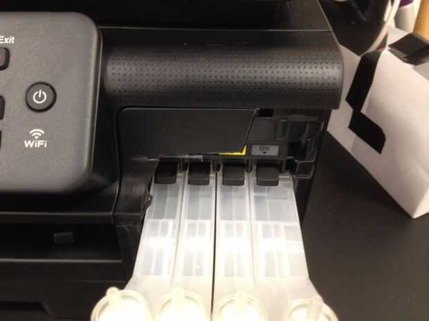 Cuando primero conectar la impresora, necesitará configurarlo con los cartuchos que vinieron con la impresora. Esto realmente no es tan grande de un acuerdo teniendo en cuenta los tubos ya se llenan de tinta y necesitarán ser drenada después de todos modos. La impresora entrará en un proceso de limpieza y luego le pedirá que ejecute una prueba de impresión cuando ha terminado.