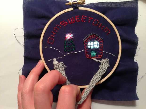 Para este mini proyecto, quería jugar con esta intersección mediante la inclusión de una capa interactiva dentro de ella. Cada ornamento ofrece una promesa de estar juntos a sus dueños (es decir, mi propia familia que no veo tan a menudo como gusta o si). Para lograr esto, el mecánico de interacción involucra al usuario en la historia de la ornamentación. En Ohm Sweet Ohm, las luces del hogar se convierten en más brillantes más largo es el camino (hilo conductor utilizado como un resistor variable) se vuelve, un recordatorio de que la casa está listo para abrazarle sin embargo ahora es posible que. Este fue para mi mamá y mi padrastro.