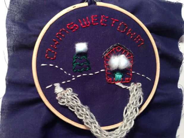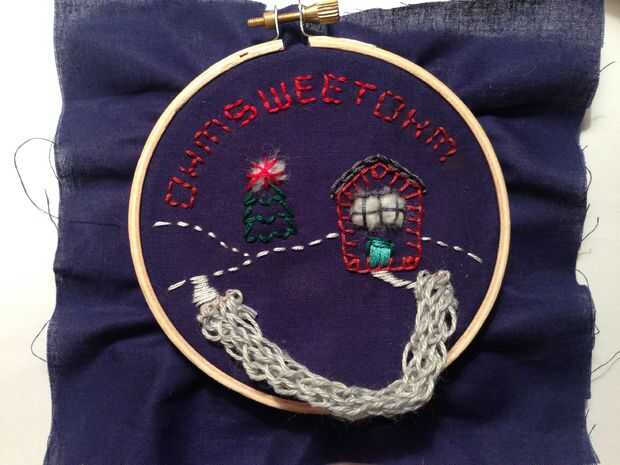 • Asegurar con una puntada estrella sobre el árbol y una puntada recta para crear dos ventanas.