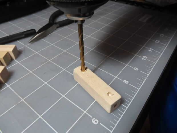 Cuidadosamente la broca en la espiga del centro y perfore un agujero lo suficientemente profundo para su imán.