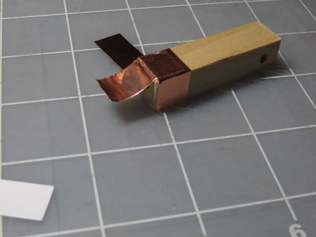 • Envuelve la cinta de cobre por lo que hace una completa revolución, y y todavía tenía suficiente para los dos lados más. Dejé esta parte despegue.