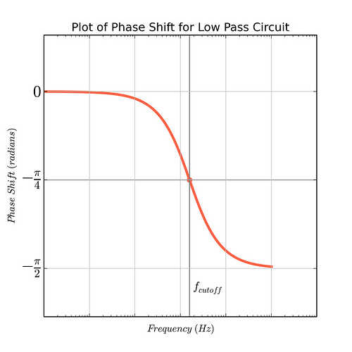 A bajas frecuencias, la señal de salida es fase cambiada de puesto por cero, y a altas frecuencias el desplazamiento de fase es casi π/2. La frecuencia de corte es importante para el cambio de fase porque es la frecuencia en que la señal de salida es fase cambiada de puesto por exactamente la mitad de π/2, π/4.