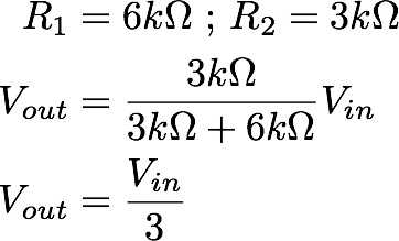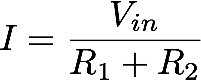 La clave para entender cómo funciona el divisor del voltaje es saber que la corriente, , debe ser igual en ambas resistencias si no hay ninguna corriente absorbida a la salida. Usando la ley de Ohm (V = IR, voltaje = corriente x resistencia), vemos que la caída de tensión en cada una de las dos resistencias es proporcional a su resistencia. Por ejemplo, el voltaje de entrada se reparte uniformemente en ambas resistencias si los resistores tienen las mismas resistencias. Para ponerlo otra manera (y realmente obtener una fórmula para el voltaje de salida) calculemos actual en términos de la tensión de entrada y la resistencia total usando ley de Ohm de los circuitos.