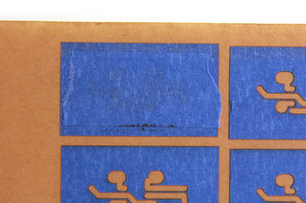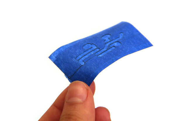 Tenga cuidado de no pegue la cinta en el papel muy bien, podría terminar rasga encima de la capa superior de papel cuando se quita la máscara más adelante. Después de algunos intentos fallidos, encontré que funcionaba mejor para pegar la cinta a mi mano un par de veces antes de colocar en el papel, de esta manera no es tan pegajoso.